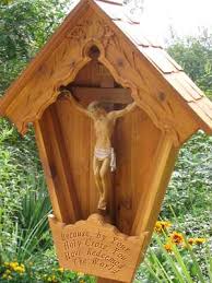 Wayside ShrinesScattered along main avenues, side roads, twisting mountain access roads, and in fields are small shrines. Most consist of a crucifix sheltered inside a wooden frame. Others have a small statue of our Blessed Mother. Fresh flowers are often placed on shelves below, indicating that someone cares enough to maintain the shrine. Some are memorials to deceased individuals, some are traditional places to pause for prayer during long journeys, and others are there simply to inspire devotion. Mountain tops are also often capped with crucifixes, quite a symbol of a goal to be reached for hikers.