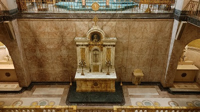 The music will be directed by Wassim Sarweh. St. Aloysius, located on Washington Boulevard near the Book Cadillac Hotel, is a unique tri-level structure: The second floor has a U-shaped balcony containing the pipe organ and overflow seating. The main floor contains the main sanctuary, framed in a theatre-like proscenium. The real gem is a lower-level church visible through a cutout inside the Communion Rail, reminiscent of the confessio at St. Peter’s Basilica in Rome. With a High Altar, two Side Altars, a Communion Rail, and two confessionals, the lower level church is a perfect setting for the Extraordinary Form.